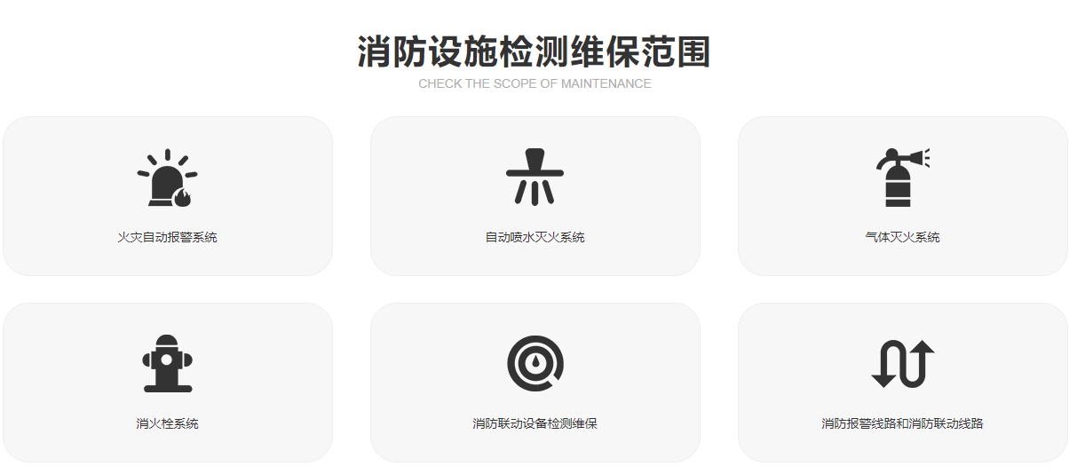 程》、《消防控制室通用技术要求》等规范,提供消防设施检测维保服务,让整个系统始终处于良好的运营状态。